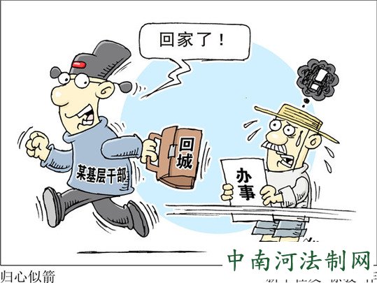 漫画:归心似箭 新华社发 徐骏 作 (新华视点·聚焦“反四风”成绩单之三)6000多名“走读干部”被查处的背后——中央首次大规模整治干部“走读之风” 新华网北京10月12日电(新华社“新华视点”记者翟永冠、王存福)一些家住城里的基层干部,不深入群众、把工作放在第一位,而是常常往家跑,被称为“走读干部”。党的群众路线教育实践活动进入收官之际,共有6484名“走读干部”在专项整治中被查处。这是中央首次大规模集中处理这一长期遭诟病的干部作风问题。 有专家称,这意味着反“四风”不仅剑指吃喝奢靡等“明疾”,还深入到党员干部工作态度、考核考勤等“庸懒散奢贪”的“暗症”。国家行政学院教授汪玉凯告诉记者,干部“走读”实际上是一个老问题,近年来,情况似乎变得更加严重。“专项整治活动中发现查处如此数量众多的干部,着实让人震惊”。 有被查处的干部说,原来觉得只是“偷个懒”的小事,现在却成了作风不正的大问题。经过深刻检讨认识到,中央对领导干部是否勤政的督查是动真格的了。 全国超万名“走读”干部被排查发现 “干部像候鸟,频往家里跑;白天寻不见,晚上影难找;办事得赶早,晚了就白跑”。这首流传甚广的顺口溜,是群众对基层干部“走读”现象的生动描述。 记者梳理各地晒出的“成绩单”发现,全国共有超万名“走读干部”被排查发现,6484名被查处。其中,黑龙江省共排查出“走读”的乡镇干部4726人,已整改2350人。四川查处1746人,湖北查处1180人,河南查处513人,青海查处190人,江苏查处162人,广东查处136人,浙江查处84人,海南查处60人。北京、上海、甘肃、云南等地在“成绩单”中没有提及“走读干部”的问题。 专家分析,干部“走读”问题主要在乡镇地区比较突出,城市地区则较少。所以,那些拥有广大农村的省份,相对来说查出的数量就较多。同时,由于查处力度和执行标准不同,有一些地方干部“走读”问题也很突出,却在查处方面并没有充分体现。 “基层干部应该在乡镇工作,两脚应该踩在泥土上,这样才能更真正服务于民。”中央党校教授辛鸣说,“走读干部”心不在岗,脱离群众,作风漂浮,只是把工作地当成一间办公室,不要说对基层发展有什么贡献,还会滋生一系列“四风”问题。 干部“走读”易引发腐败和工作重大损失诸多问题 不少群众反映,“走读干部”工作在当下,“生活在别处”,不能和老百姓同吃、同住、同劳动,岂能和老百姓同心、同德、同奋斗?天津一位纪检干部说,“走读”看似是小事,其实反映了对工作的态度和对群众的感情,发展下去可能就是渎职。 “夫祸患常积于忽微”,“走读”看似小事,其核心则是能否保持党群的血肉联系,保证党的执政基础。“新华视点”记者采访发现,任由干部“走读之风”泛滥,会产生诸多问题。 ——履职敷衍与百姓隔离。南开大学周恩来政府管理学院博士生导师徐行说,一些乡镇干部只有在领导点名时见见面、点名后不露面,层层搞“遥控指挥”,既不能及时履行职责,对群众诉求和基层实际也难以把握,无形中与老百姓竖起一堵墙。河南一位农民说,在我们眼里,有些干部就是高高在上的“大老爷”,我们不熟,也不愿意跟他们说啥。 ——占用公共资源滋生腐败。干部“走读”造成许多潜在的腐败现象。一些干部频繁往返用公车接送,增加财政负担,滋生“车轮上的腐败”,助长了特权思想。一位县城干部说,县里数十位“走读干部”,仅每年花在车辆汽油和保养方面的费用就有近20万元。吉林省公主岭市秦家屯镇原党委书记、镇长崔连海,因腐败问题被判处有期徒刑20年,经查,崔连海是典型的“走读干部”,办案人员计算,在262天时间里,崔连海的专车报销汽油票150张,金额合计7.269万元,算上节假日,平均每天“花费”汽油费约278元。 ——突发情况易造成重大损失。海南省一位干部说,“走读”的干部,在“德能勤绩廉”考察中,“勤”这一项一般都存在问题,有的还相当严重。当本地出现群体性事件、灾难险情、重大事故等突发性事件时,“走读”给第一时间得到有效处理留下隐患。媒体就曾报道,一次洪水猛袭某镇,当县委书记赶到现场时,该镇党政一把手还迟迟未从县城家返回。 专家:让“走读”“走不了、不好走”还需完善制度 辛鸣表示,党政领导干部负有管理服务一方、守土有责的职责。党的干部应该和群众在一起,否则就别走当干部这条路。 实际上,各地为了解决干部“走读”问题也进行了不少探索。湖南郴州采取的是视频点名的方法,让干部不敢缺席;湖北襄阳市则采取明察暗访,让干部不敢“走读”;江西则建设了“廉政”食堂,为干部营造不愿走读的环境;天津市专门制定出台了《关于解决乡镇干部“走读”问题的规定》,建立和落实乡镇干部在本乡镇机关住宿制度、24小时值班制度、错时上下班制度、乡镇干部包村驻村制度等。 在汪玉凯等专家看来,这些年,对走读干部的管理还缺乏系统性规定。解决问题的根本办法还是要靠制度,将“走读干部”治理纳入民主和法治的轨道。比如,切实在干部考核上加以倾斜,让那些深入地方、根系群众的干部受尊重、受重用,在干部选拔任用时,充分听取群众意见。要完善现行公车管理制度、财经制度和报销制度,让“走读”“走不了、不好走”,还要完善群众批评和投诉渠道,严格问责制度,让“走神