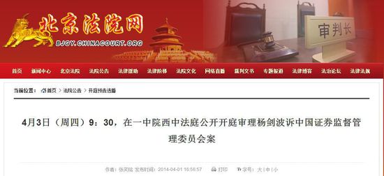 中新网4月2日电 据北京法院网消息,原光大证券策略投资部总经理杨剑波状告中国证监会案定于4月3日上午9:30在北京一中院西中法庭开庭,杨剑波此前已和证监会进行了证据交换,北京法院网将直播庭审过程。 2013年11月,证监会对杨剑波作出行政处罚决定及市场禁入决定,两决定认定:2013年8月16日11时05分,光大证券在进行交易型开放式指数基金(以下简称ETF)申赎套利交易时,因程序错误,其所使用的策略交易系统以巨量资金申购180ETF成份股,同日光大证券决策层达成做空股指期货、卖出ETF对冲风险的意见,并让杨剑波负责实施,由此,证监会以光大证券决策层了解相关事件的重大性之后,在没有向社会公开之前进行的交易,应当认定为内幕交易为由,决定对杨剑波给予行政处罚及市场禁入。 杨剑波不服行政处罚及市场禁入决定,认为光大证券的错单交易信息不属于内幕信息、光大证券并未利用错单交易信息从事证券或期货交易活动及其并非其他直接责任人员,向一中院提起行政诉讼,请求法院撤销两被诉决定。 (原标题:光大乌龙指主角杨剑波状告证监会案4月3日开庭) |