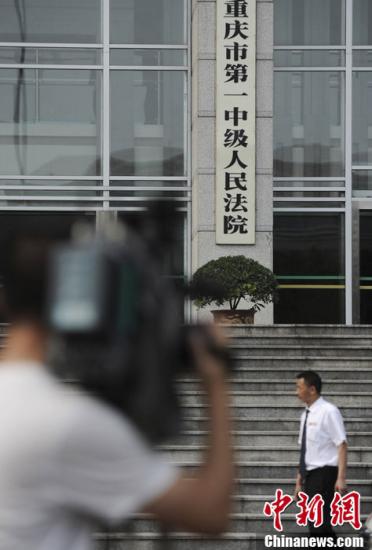 6月19日,重庆市北碚区原区委书记雷政富受贿案在重庆市第一中级人民法院公开开庭审理,吸引众多媒体记者关注。图为一记者正在法院外取景。中新社发 陈超 摄