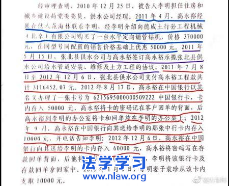 张家口市中级人民法院在2017年4月20日的《驳回申诉通知书》中摘录了原审判决同样的内容。 一、张北县供水公司与高永裕签订《给水安装施工协议》与高永裕通过银行卡给李明的12万元没有因果关系。 (一)张北县供水公司与高永裕签订《给水安装施工协议》签订时间是2011年5月份,而高永裕给李明钱是2012年8月、9月、12月。从时间上看两者没有因果关系。我们常说前因后果,因在前,果在后。因此所谓“为了好揽活”是不成立的。 (二)张北县供水公司与高永裕签订《给水安装施工协议》是30多年合同关系的自然延续。这一点已被原审调查证实,尽管法庭没有明确认定,但也原审没有证据否认这一事实。 从被告人李明的供述到高永裕证言,以及张北县供水公司领导班子相关人员(蔺建军、)的证言,都证实了供水公司与高永裕签订《给水安装施工协议》是合同到期后的续签,合同签订过程中经过集体讨论决定,并经过公证完成。 合同签订过程中没有竞争者(此类工程比较零散,维修要求随叫随到,所以不适用招投标),没有被告人干预提高或压低价格的情况出现。如果合同签订过程中有竞争者,可能导致高永裕行贿;如果合同签订过程中,被告人李明有故意压低价格的行为,高永裕为了获得合理的价格可能导致其行贿;如果合同签订过程中被告人李明干使合同价格明显高于市场价格,可反推更有行贿可能。笔者所说的不存在是消极事实,作为申诉人(被告人)和辩护人并无法证明,因为消极事实无法证明,这需要公诉人通过积极的事实证明“有上述情况”才可以,然而,原审判决并没有证明有这些情况。当然,即便证明有上述情况出现也只是有行贿受贿可能,并不能当然证明行贿受贿。 (三)没有证据证明李明与高永裕约定张北县供水公司与高永裕签订《给水安装施工协议》,高永裕要给李明好处或者提成。 二、张北县供水公司给高永裕支付工程款与高永裕通过银行卡给李明的12万元没有因果关系。 (一)同样道理,高永裕给李明钱是在供水公司给高永裕支付合同款之后,从时间上没有因果关系。为了好结账,那得先给钱啊。因此,“为了好结账”是不成立的。 (二)张北县供水公司给高永裕支付工程款是按照合同约定支付的,是履行合同的行为。 (三)没有证据证明张北县供水公司逾期支付工程款。 (四)没有证据证明李明通过权力干预张北县供水公司逾期拖延支付工程款,从而造成高永裕行贿可能。 (五)没有证据证明李明通过权力干预张北县供水公司违反合同提前支付工程款。 (六)没有证据证明李明与高永裕约定支付工程款要给好处或者提成。 有人认为,李明被动收了12万就说不清了,因此判他受贿罪并不冤枉。 事实上高永裕在2013年12月19日第一次出庭接受法庭质证中明确12万元是因为李明帮助买顶管机获得优惠并因此挣到钱了,给李明的感谢费,否定了此前侦查阶段在检察院在面临行贿罪追诉威胁、检察官教授(原审刻意回避了这一事实,以后发文论证)的情况下所作的证言。 第一次质证后在检察院找过高永裕之后,高永裕的证词再次改为给李明钱一方面是为了感谢帮助买顶管机,另一方面是为了好揽活、好结账。 我们在本篇中且不论高永裕后来的证言是否可信(下一篇《想象被强奸被想象对象就构成犯罪吗?》姜杰律师将谈高永裕证言的在本案中的作用),假定其可信,那也不能因此认定李明构成受贿,因为构成受贿罪需同时具备两个条件,一是有非法收受他人财物的行为,二是有为他人谋取利益的行为。这两条可以简单概括为“收人钱财,为人谋利”。因此,要认定李明构成受贿罪还要证明、论证李明为高永裕谋取了利益。 |