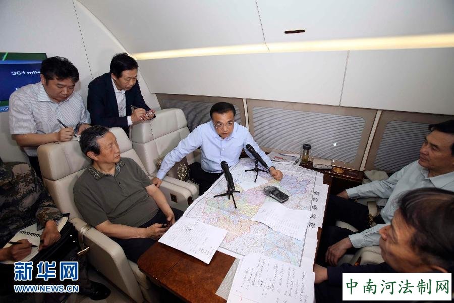 6月2日,在飞赴湖北监利长江客轮事件现场的途中,国务院总理李克强在专机上召集有关方面负责人研究落实施救措施。 新华社记者 丁林 摄
